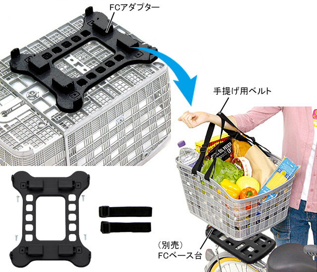 ・固定タイプのバスケットなどの底に取り付けて、別売のFCベース台(B-6)と組み合わせることでオリジナルのフリーキャリーシステムとして使用可能