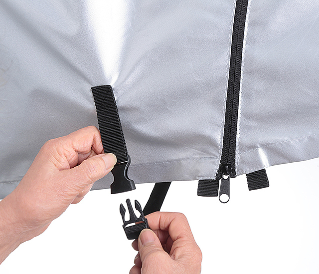 ・風でカバーがめくれ上がるのを抑える風飛び防止ワンタッチベルト付き
