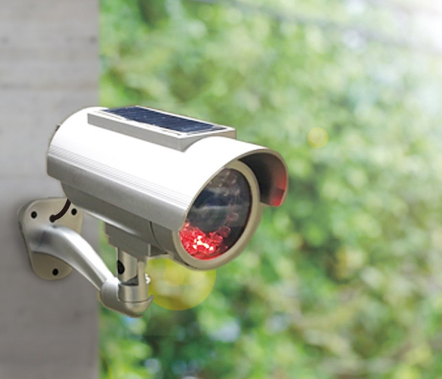 ・赤色LEDが常時点滅する防犯ダミーカメラ・ソーラー充電パネル搭載で配線不要