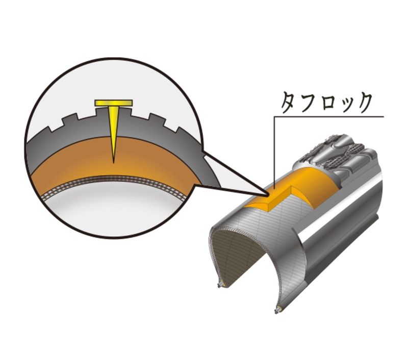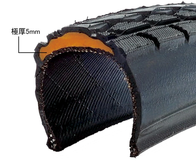 ・タイヤ内部に5mmの強靭なゴム層を配置して耐パンクを強化