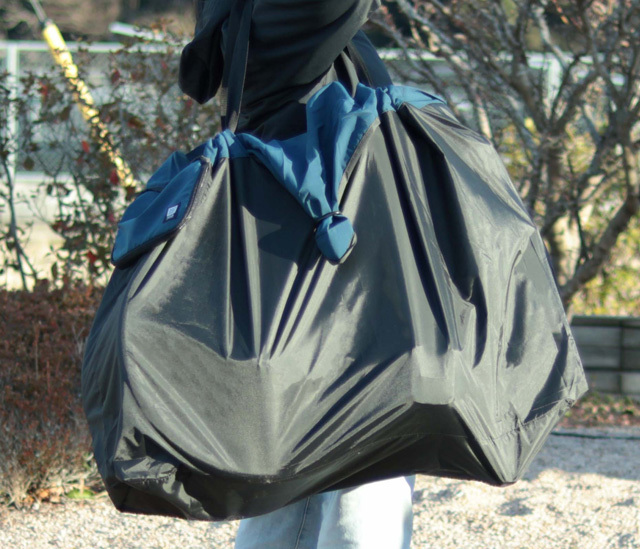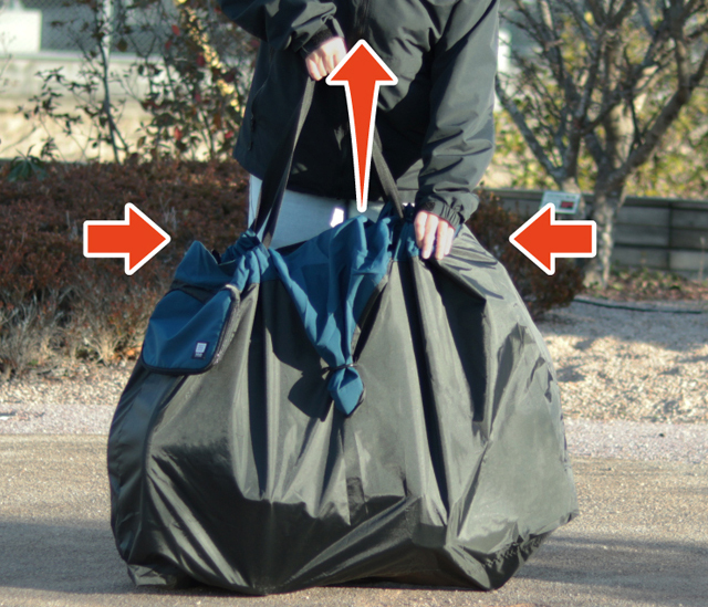 ・持ち手を引き上げると輪行袋の口が自然に絞られてぴったりとフィット