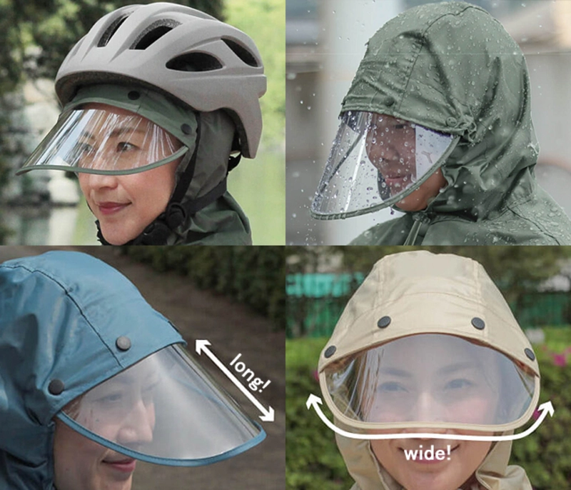・硬質ツバで雨水からしっかり顔を守るレインガードバイザー付き