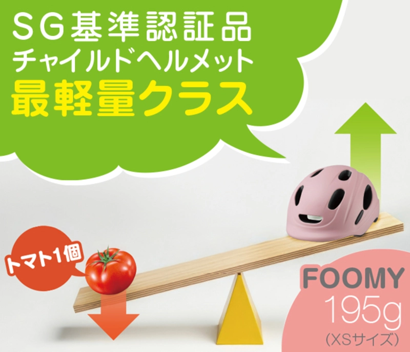 ・軽さと涼しさにこだわったストレスフリーなキッズヘルメット・小さなお子様の首への負担を抑える超軽量設計・スポーツ用ヘルメットの技術を応用し、ムレにくく快適な通気性を実現