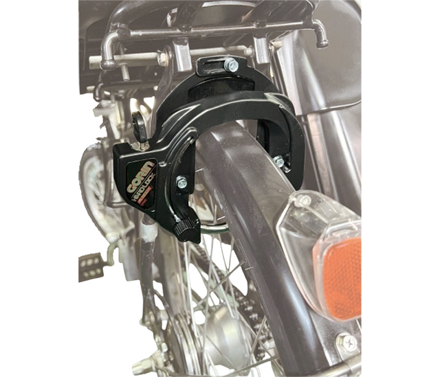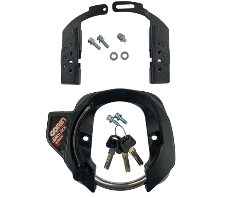 ・各メーカー、各車種において多種多様な取り付け位置がある電動アシスト自転車にマルチに対応するe-ブラケット付属のリング錠・カンヌキは丸棒設計で頑丈に