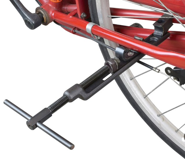 ・フレームに固着したハブの取り外しや、ホイールをフレームに装着したままでのタイヤ、チューブの入れ替えなど、フレームを一時的に拡張させる工具