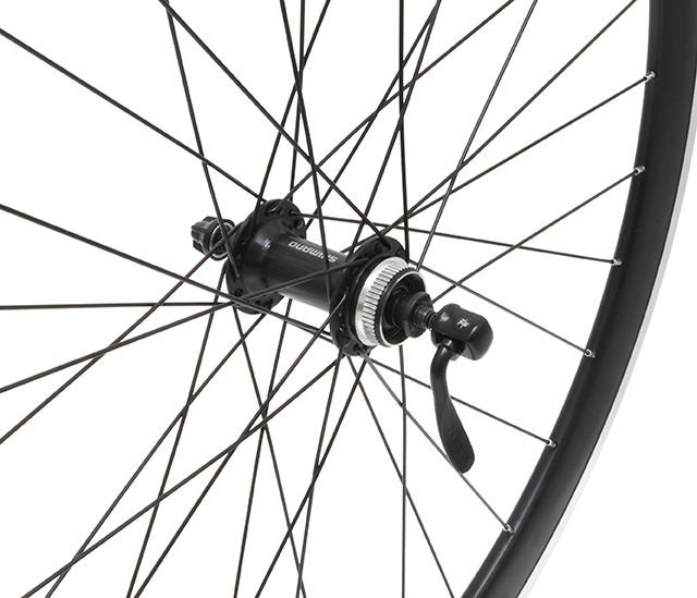 ・ディスクブレーキ対応のシマノ製フロントハブ(オーバーロックナット寸法:100mm)