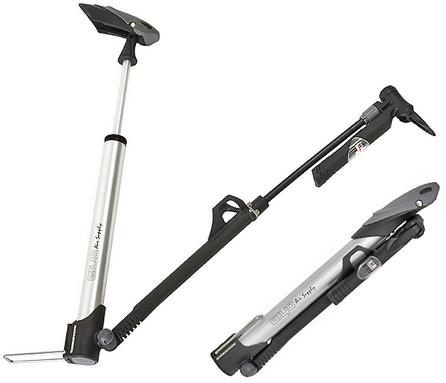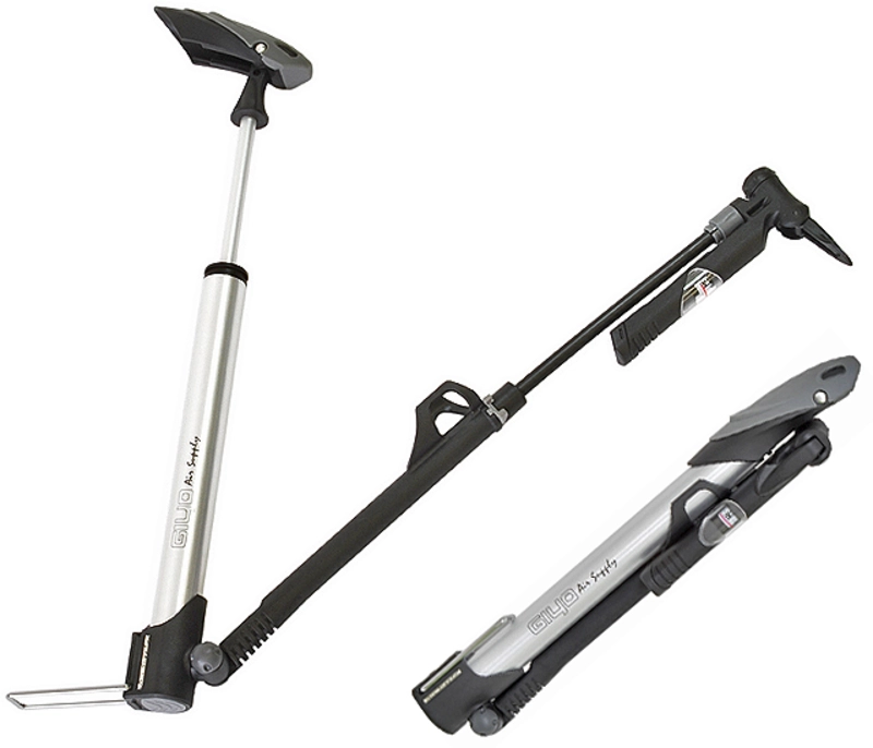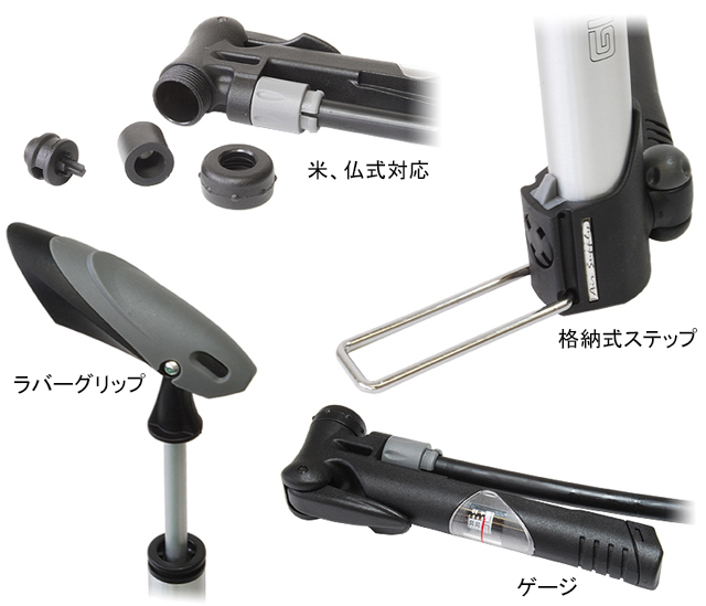 ・フロアポンプの性能をそのままに軽量かつスリムなボディの携帯ポンプにゲージが搭載