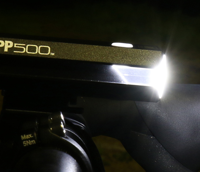 ・ハイ(500ルーメン)、ロー(250ルーメン)、デイタイムハイパーコンスタント(500/250ルーメン)、点滅(250ルーメン)の4モード搭載