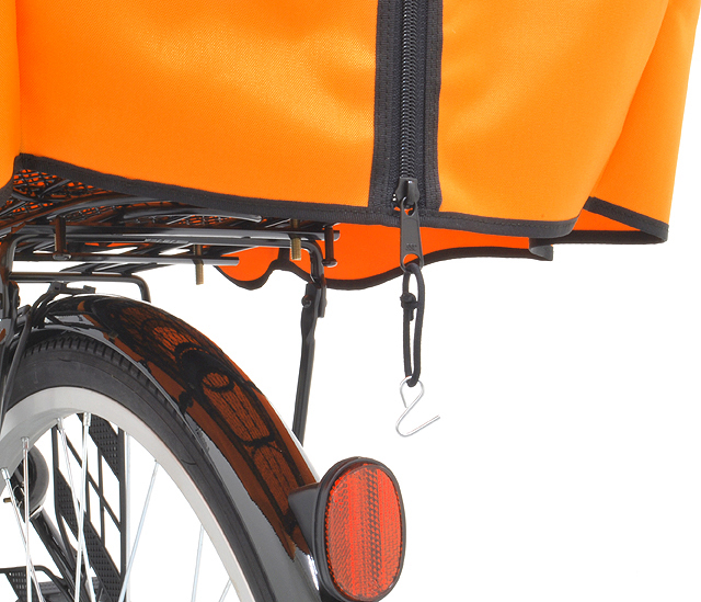 ・荷物の飛び跳ね防止だけでなく、突然の雨から荷物を守り、不意のひったくりにも防犯効果を発揮
