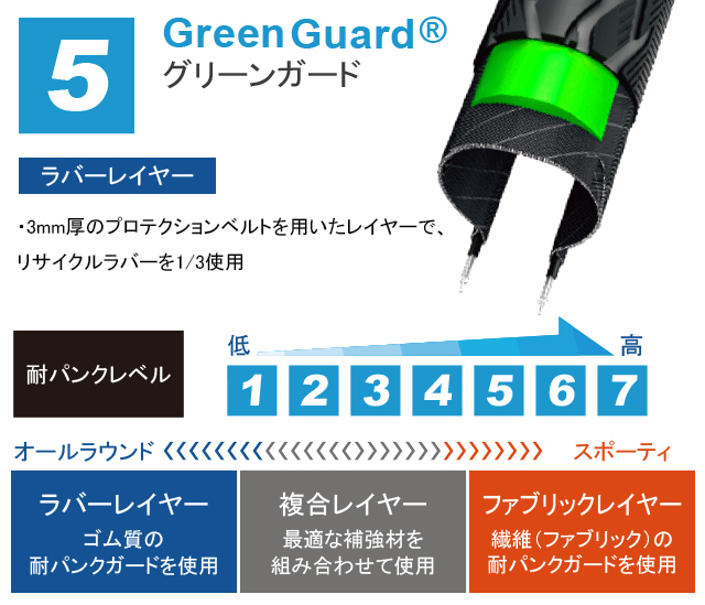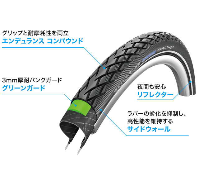 ・マラソンの最大の特長、グリーンガードは、3mm厚の耐パンクベルト