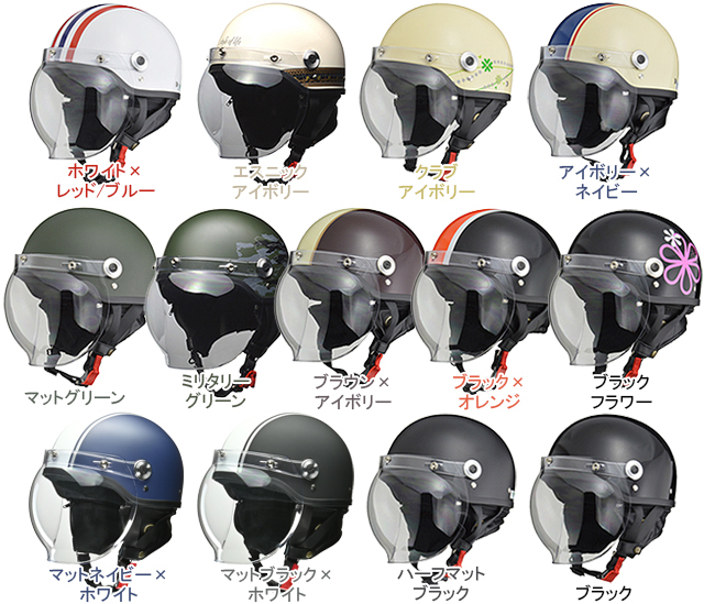 ・開閉式バブルシールドを装備したハーフヘルメット
