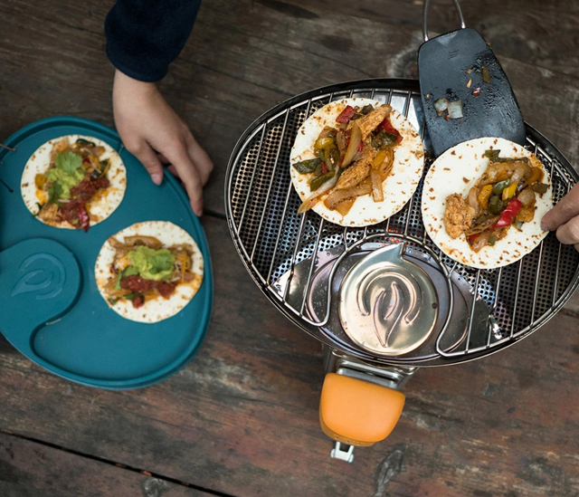 ・バーベキューが楽しめる別売のキャンプストーブ2 PLUS専用の折りたたみ式グリル