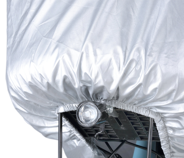 ・フルカバータイプは裾の処理にかがむ必要があったものの、かがむ負担を軽減してカゴ、ハンドル、サドルの上部をしっかり守る新提案
