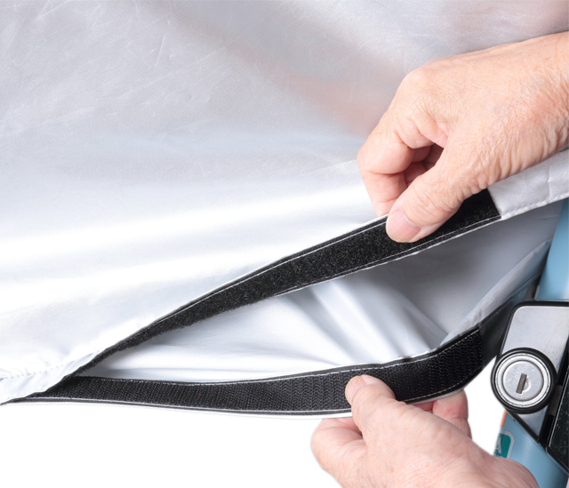 ・風でカバーがめくれ上がるのを抑えるロング面ファスナー付き